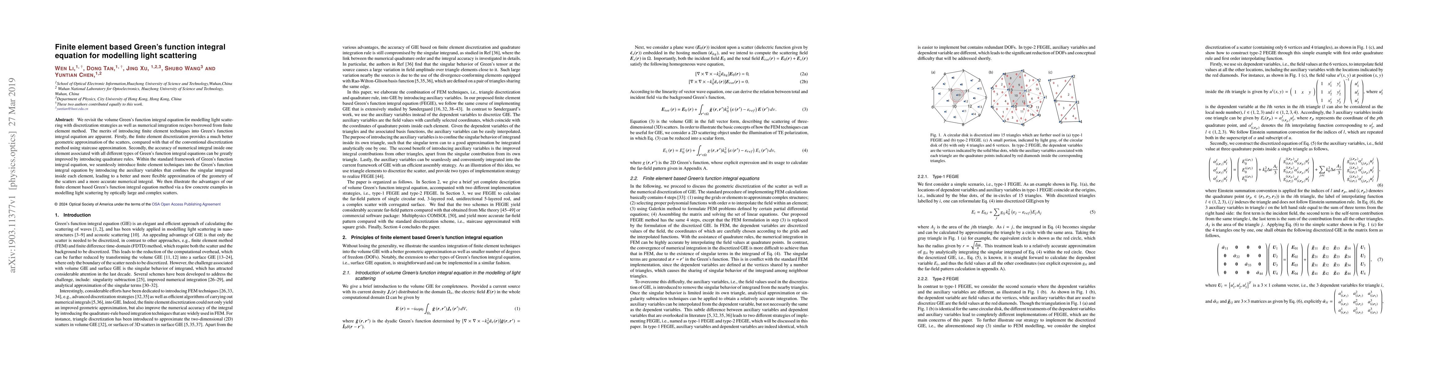 This paper proposes a finite element-based Green's function integral equation for improved light scattering modelling, offering better geometric approximations and enhanced numerical integration accuracy compared to conventional methods. The method demonstrates superior performance in simulating complex, large scatters.