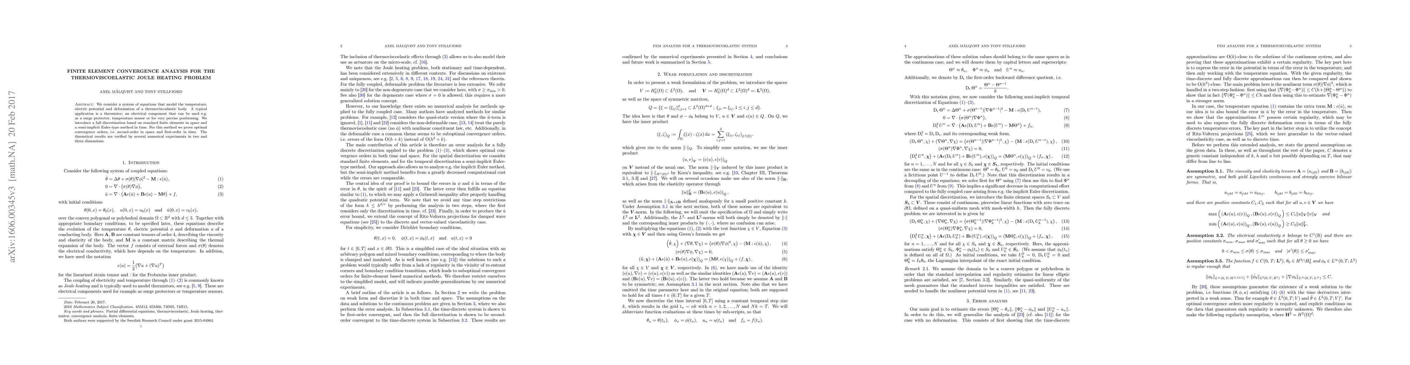This paper analyzes the convergence of a finite element method for solving a thermoviscoelastic system, proving optimal convergence orders in space and time for a specific numerical method.