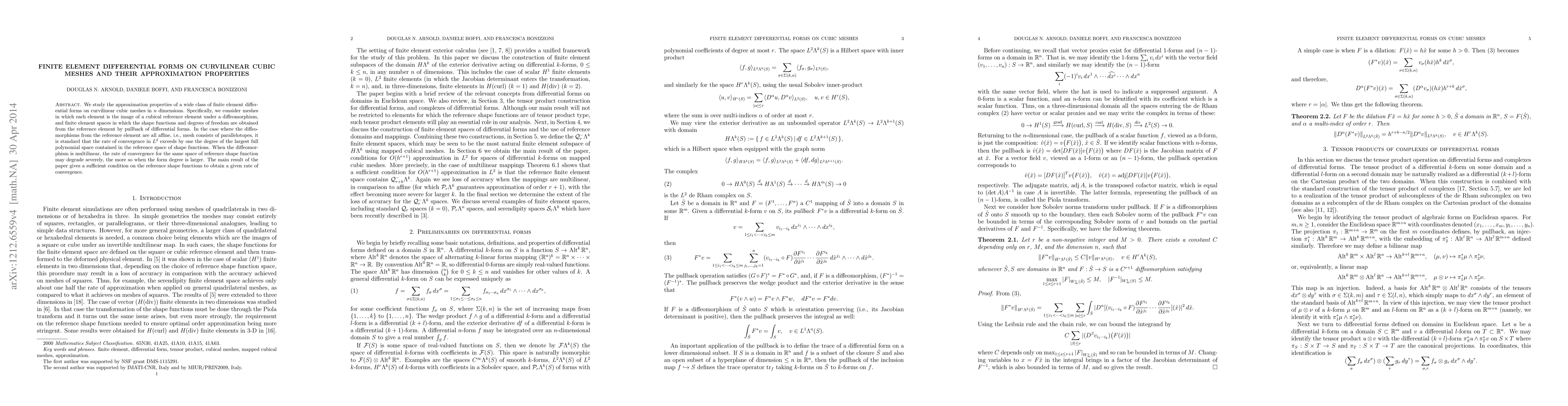 This research paper investigates the approximation properties of finite element differential forms on curvilinear cubic meshes in n dimensions. It finds a sufficient condition for achieving a given rate of convergence in L2 norm.