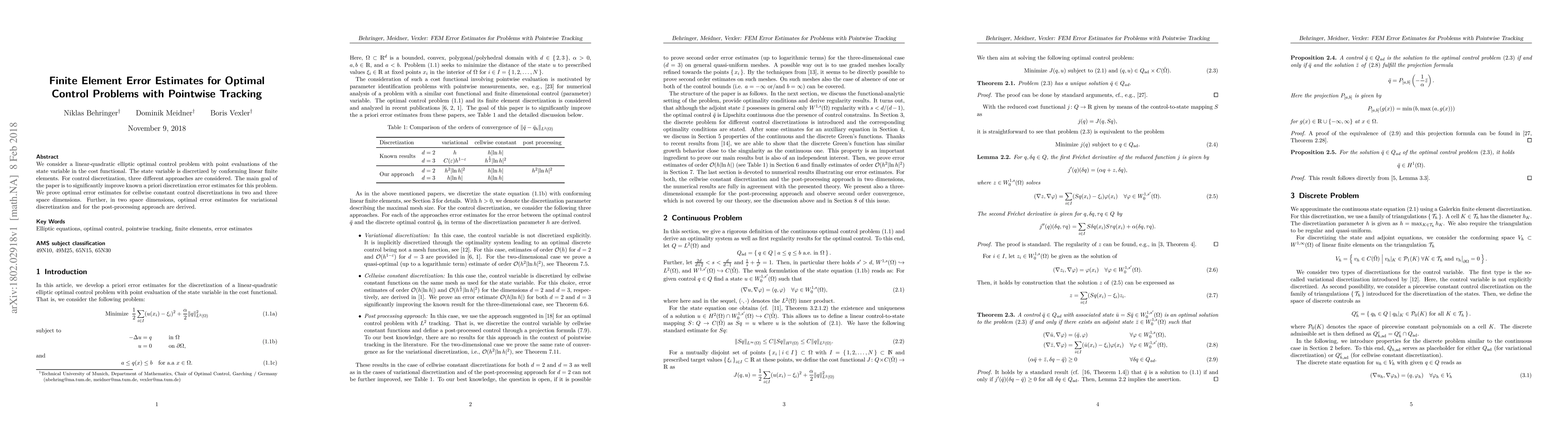 This paper investigates a linear-quadratic elliptic optimal control problem with pointwise tracking, employing conforming linear finite elements for state discretization. It aims to improve a priori error estimates, proving optimal results for various control discretization methods, including cellwise constant, variational, and post-processing approaches in two and three dimensions.