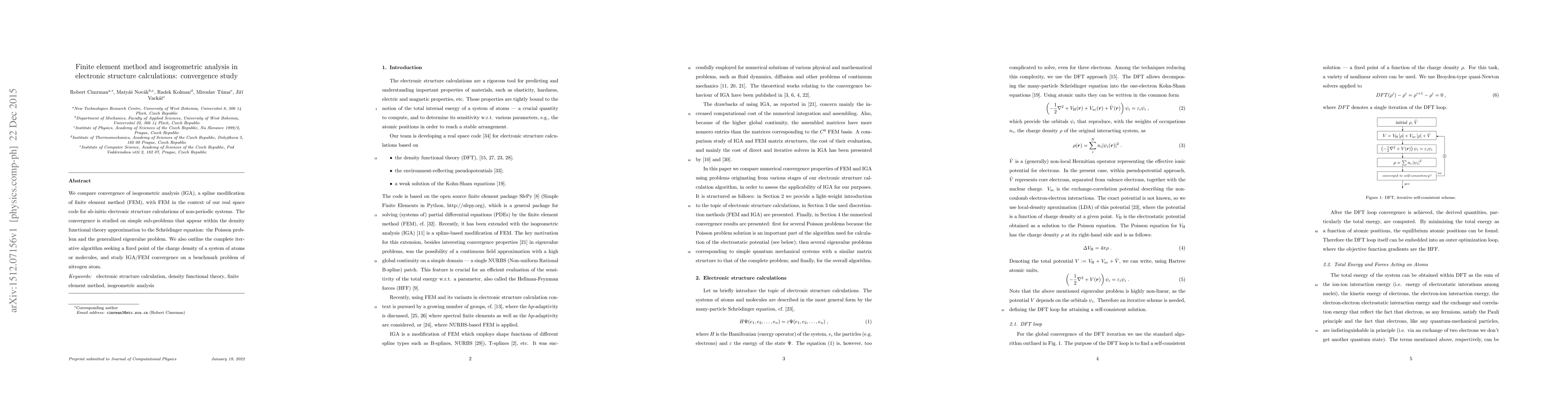 This study compares the convergence of isogeometric analysis (IGA) and finite element method (FEM) in ab-initio electronic structure calculations for non-periodic systems, focusing on the Poisson problem and generalized eigenvalue problem within density functional theory. The research also examines the iterative algorithm for charge density and assesses convergence using a nitrogen atom benchmark.