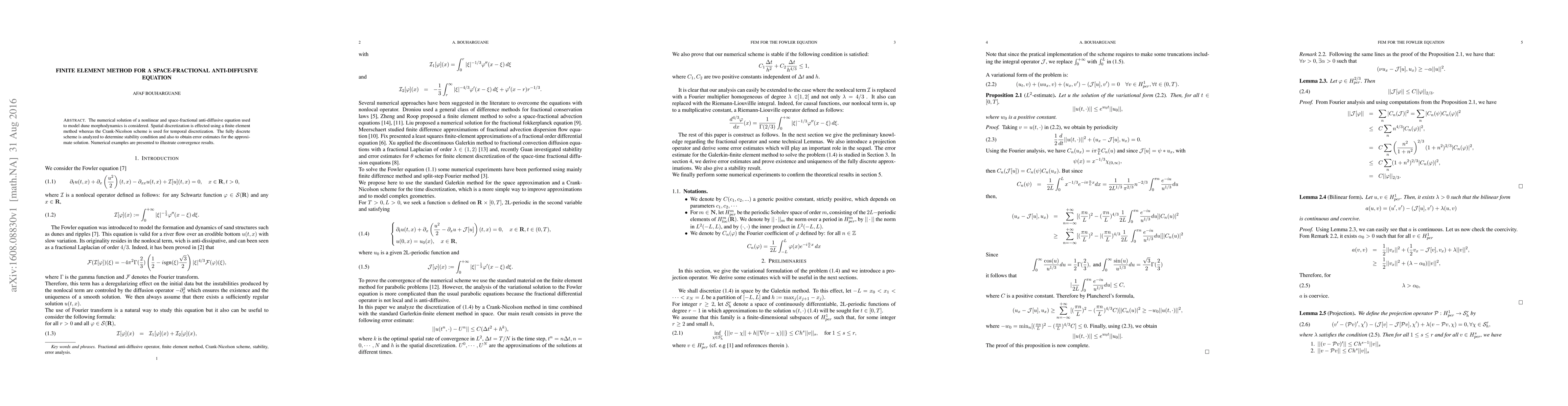The numerical solution of a nonlinear and space-fractional anti-diffusive equation used to model dune morphodynamics is considered. Spatial discretization is effected using a finite element method whereas the Crank-Nicolson scheme is used for temporal discretization. The fully discrete scheme is analyzed to determine stability condition and also to obtain error estimates for the approximate solution. Numerical examples are presented to illustrate convergence results.