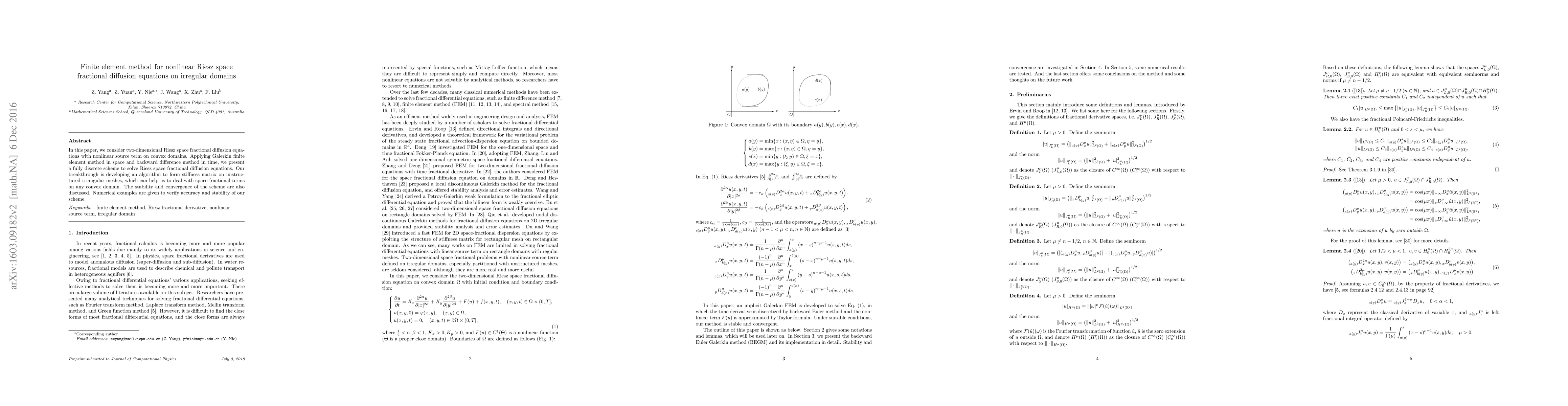 This paper proposes a finite element method for solving nonlinear Riesz space fractional diffusion equations on convex domains, utilizing a Galerkin approach and backward difference method. The study introduces an algorithm for forming a stiffness matrix on unstructured meshes, ensuring applicability to any convex domain, and discusses the stability and convergence of the proposed scheme.