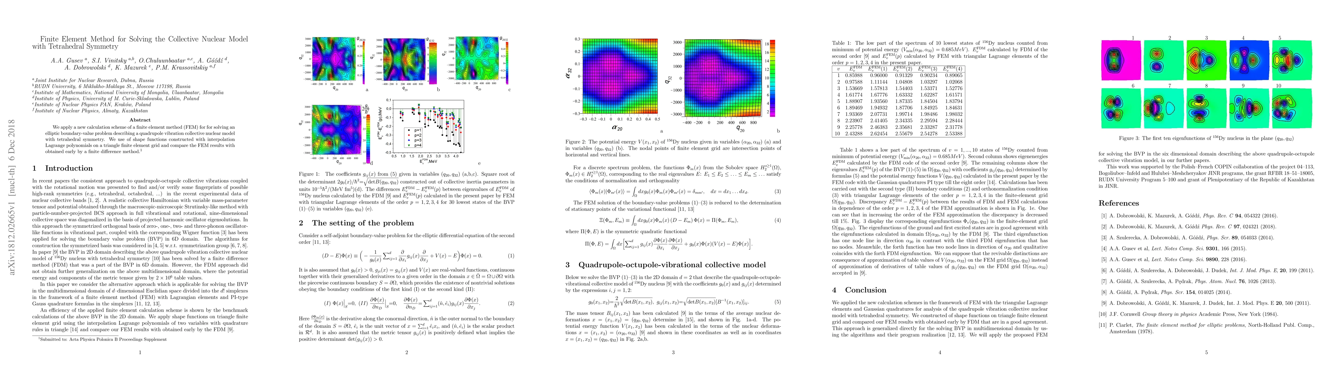 This paper introduces a finite element method (FEM) for solving a collective nuclear model with tetrahedral symmetry, employing shape functions based on Lagrange polynomials on a triangular grid. The results are compared to those obtained using a finite difference method.