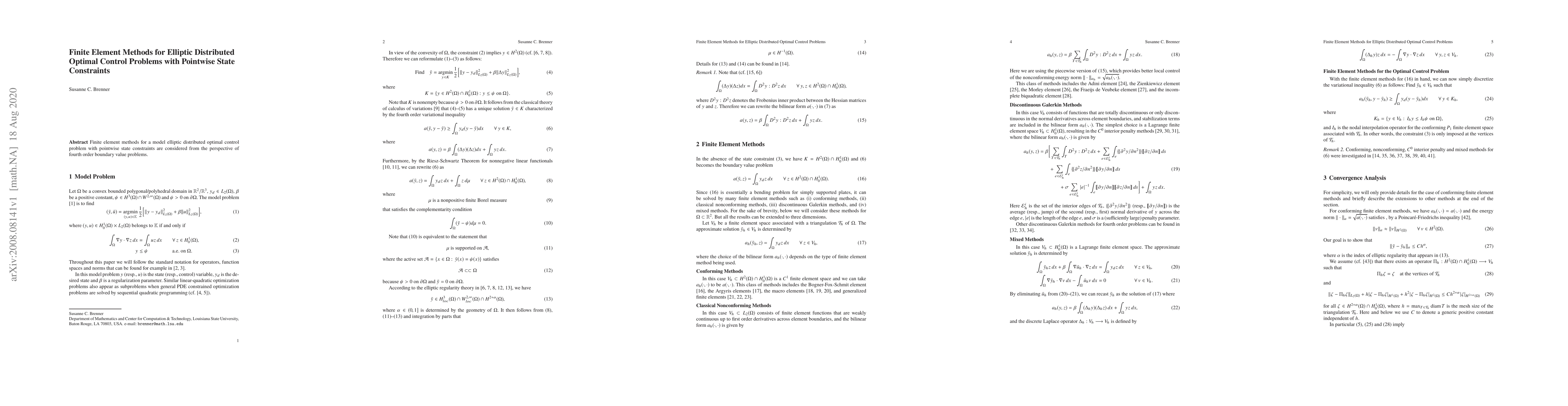 Summary: This paper investigates the application of finite element methods to solve elliptic distributed optimal control problems, focusing on fourth-order boundary value problems and incorporating pointwise state constraints. The approach provides a detailed numerical framework for optimizing control in such constrained settings.