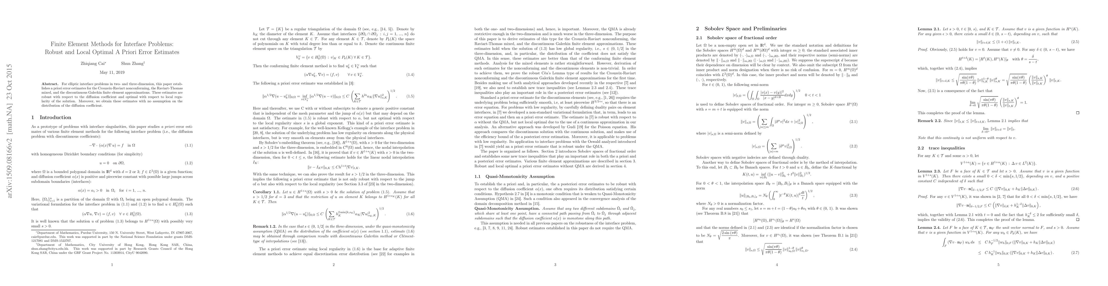 For elliptic interface problems in two- and three-dimensions, this paper establishes a priori error estimates for Crouzeix-Raviart nonconforming, Raviart-Thomas mixed, and discontinuous Galerkin finite element approximations. These estimates are robust with respect to the diffusion coefficient and optimal with respect to local regularity of the solution. Moreover, we obtain these estimates with no assumption on the distribution of the diffusion coefficient.