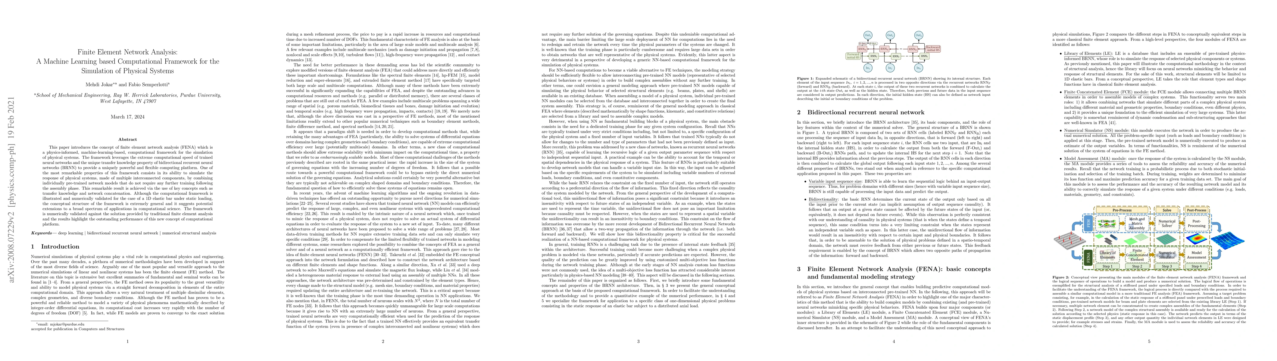 This study introduces finite element network analysis (FENA), a machine learning framework that combines neural networks for rapid simulation of complex physical systems. It leverages pre-trained network models for efficient simulation without additional training, validated through mechanical system analysis.