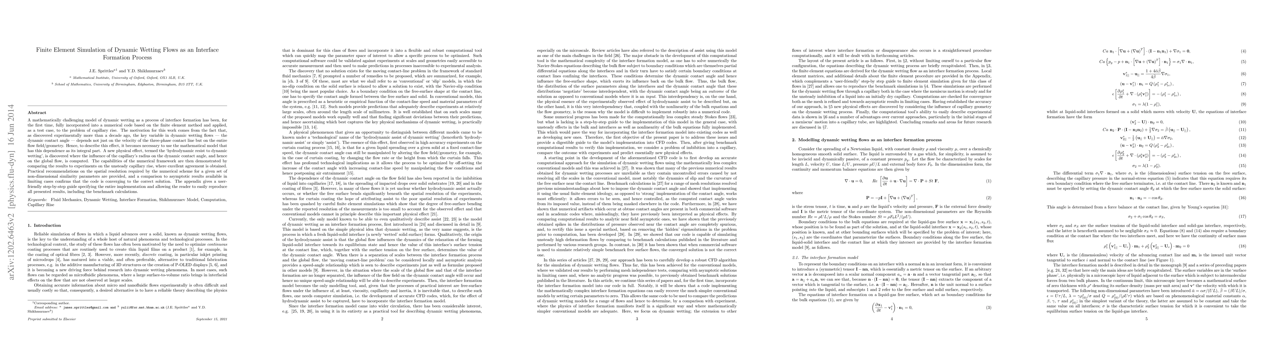 A mathematically challenging model of dynamic wetting as an interface formation process was fully incorporated into a numerical code based on the finite element method.
