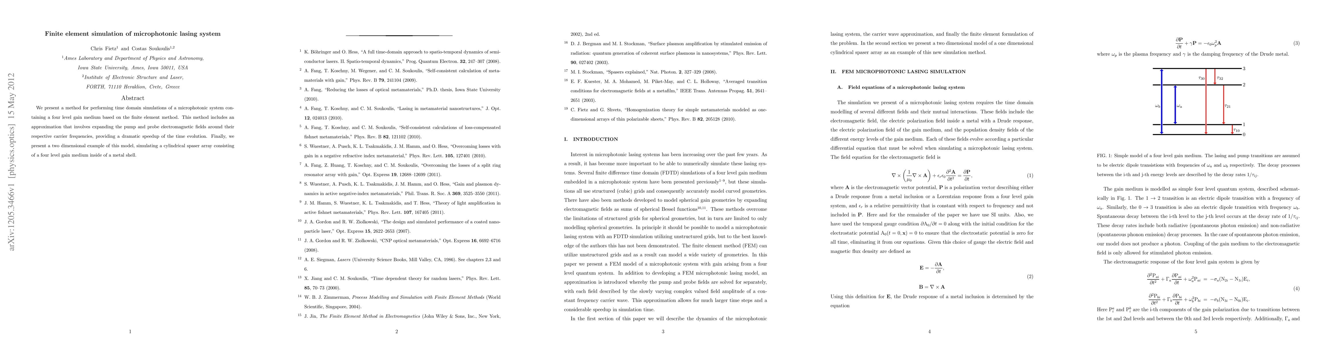 Researchers developed a method to simulate microphotonic lasing systems using finite element methods, allowing for fast time domain simulations of gain media with improved accuracy. The approach enables efficient modeling of complex systems like cylindrical spaser arrays.