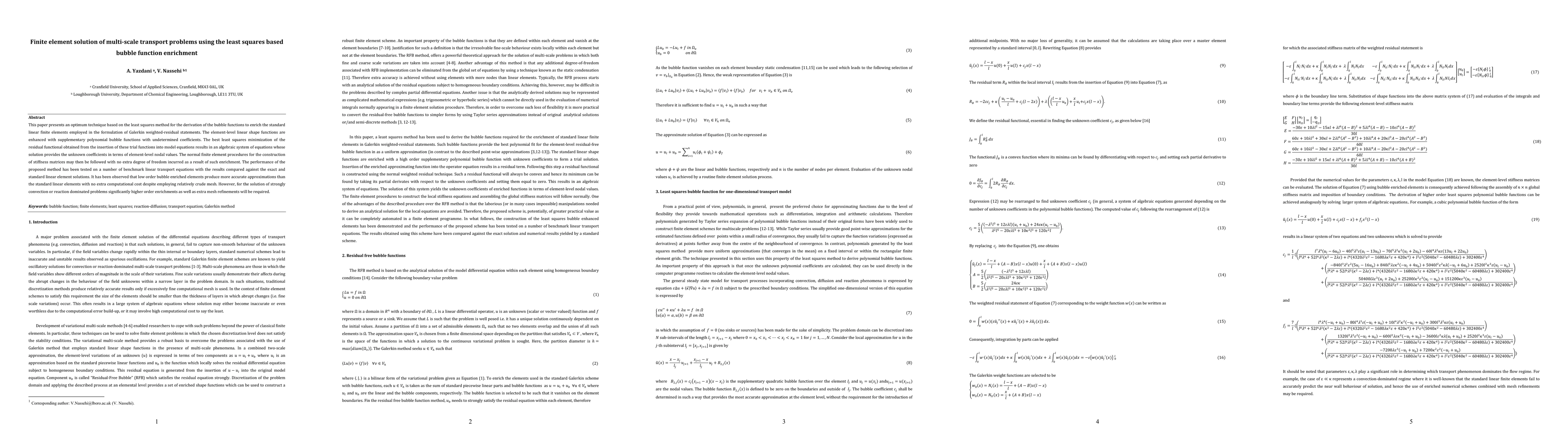 This paper introduces a new method for improving finite element solutions to multi-scale transport problems using least squares-based bubble function enrichment, which produces accurate approximations with minimal extra computational cost.