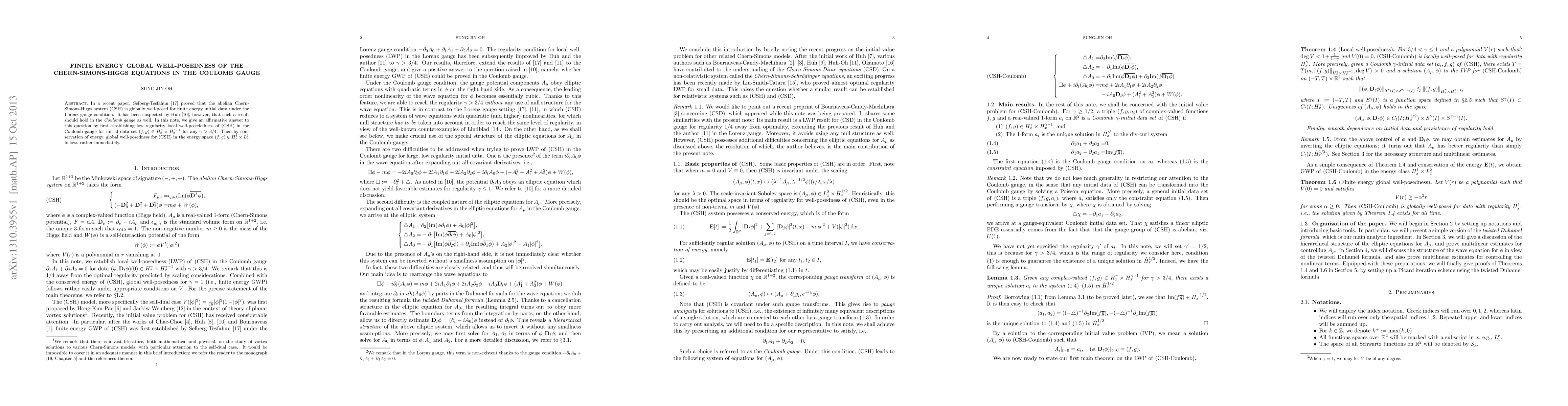 This paper establishes finite energy global well-posedness for the Chern-Simons-Higgs equations in the Coulomb gauge, affirming Huh's suspicion that a result analogous to the Lorenz gauge also holds here. It demonstrates local well-posedness for low regularity initial data and derives global well-posedness using energy conservation.