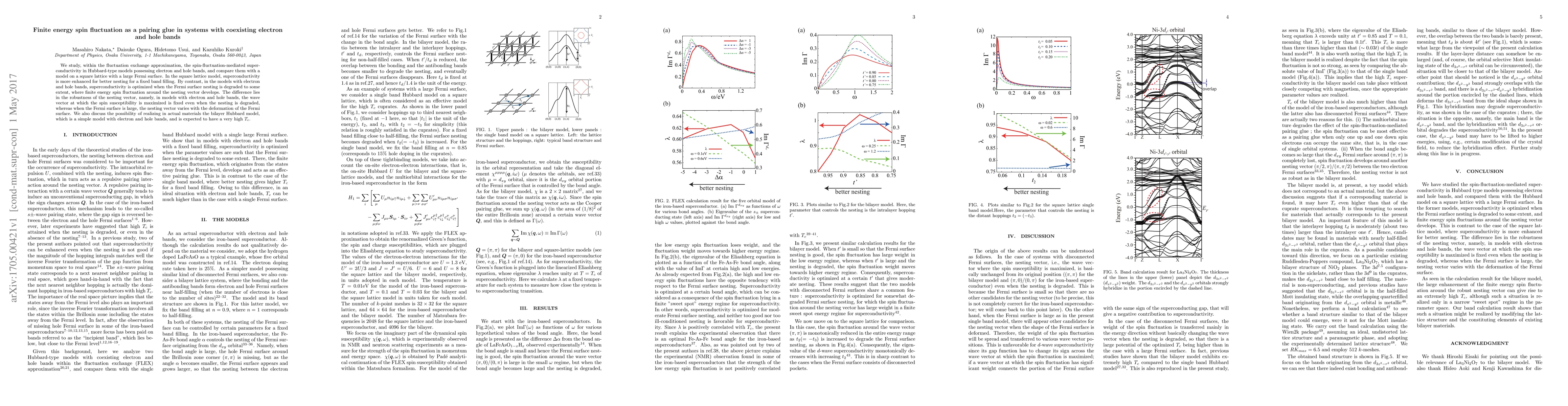 We study, within the fluctuation exchange approximation, the spin-fluctuation-mediated superconductivity in Hubbard-type models possessing electron and hole bands, and compare them with a model on a square lattice with a large Fermi surface. In the square lattice model, superconductivity is more enhanced for better nesting for a fixed band filling. By contrast, in the models with electron and hole bands, superconductivity is optimized when the Fermi surface nesting is degraded to some extent, where finite energy spin fluctuation around the nesting vector develops. The difference lies in the robustness of the nesting vector, namely, in models with electron and hole bands, the wave vector at which the spin susceptibility is maximized is fixed even when the nesting is degraded, whereas when the Fermi surface is large, the nesting vector varies with the deformation of the Fermi surface. We also discuss the possibility of realizing in actual materials the bilayer Hubbard model, which is a simple model with electron and hole bands, and is expected to have a very high T_c.