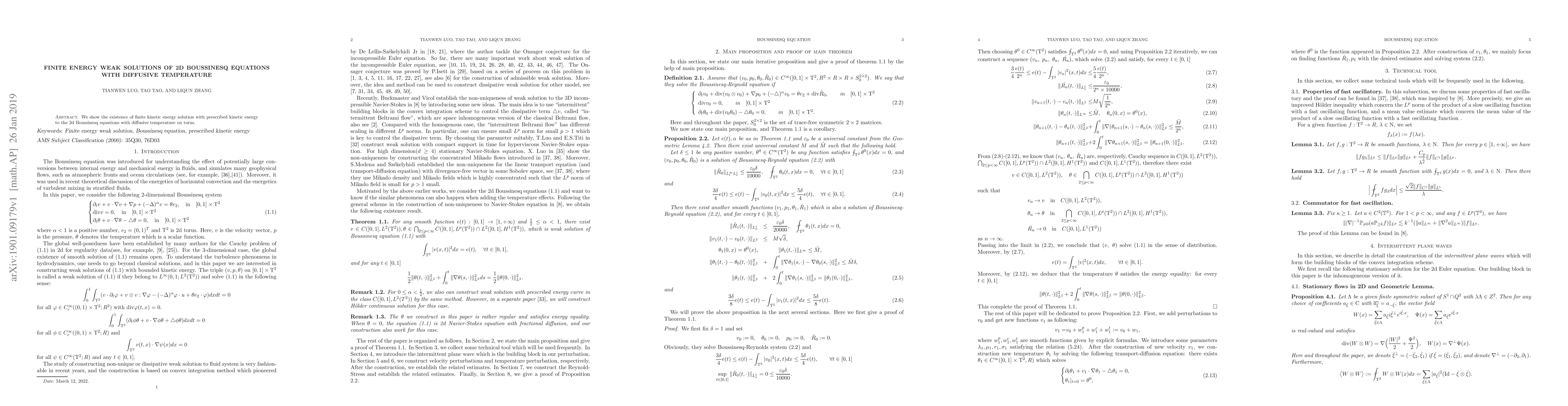 We show the existence of finite kinetic energy solution with prescribed kinetic energy to the 2d Boussinesq equations with diffusive temperature on torus.