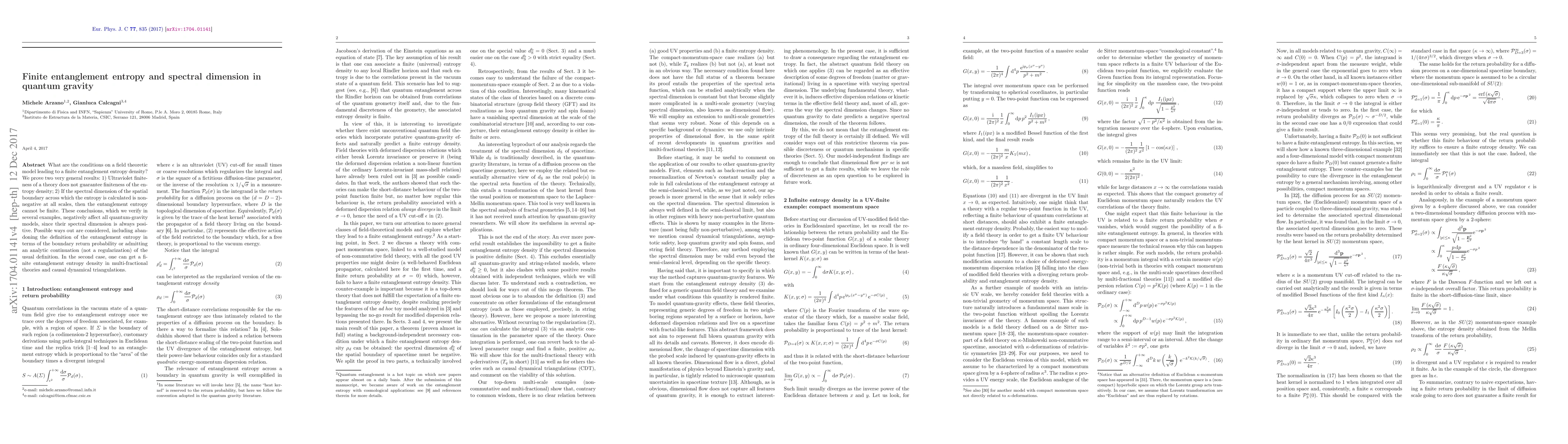 What are the conditions on a field theoretic model leading to a finite entanglement entropy density? We prove two very general results: 1) Ultraviolet finiteness of a theory does not guarantee finiteness of the entropy density; 2) If the spectral dimension of the spatial boundary across which the entropy is calculated is non-negative at all scales, then the entanglement entropy cannot be finite. These conclusions, which we verify in several examples, negatively affect all quantum-gravity models, since their spectral dimension is always positive. Possible ways out are considered, including abandoning the definition of the entanglement entropy in terms of the boundary return probability or admitting an analytic continuation (not a regularization) of the usual definition. In the second case, one can get a finite entanglement entropy density in multi-fractional theories and causal dynamical triangulations.