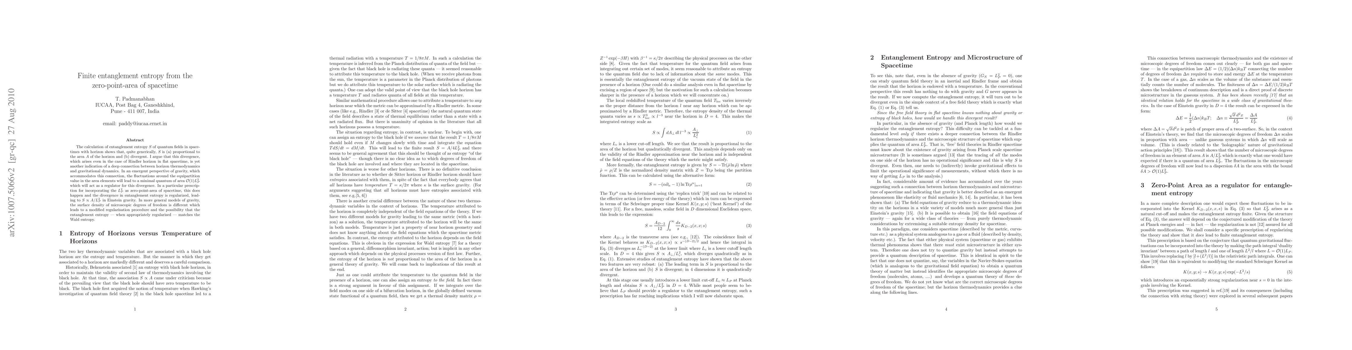 This paper argues that entanglement entropy in quantum fields near horizons is typically divergent but can be regularized by considering the zero-point-area of spacetime, leading to a finite entanglement entropy proportional to the area divided by the Planck area. This approach suggests a deep link between horizon thermodynamics and gravitational dynamics.