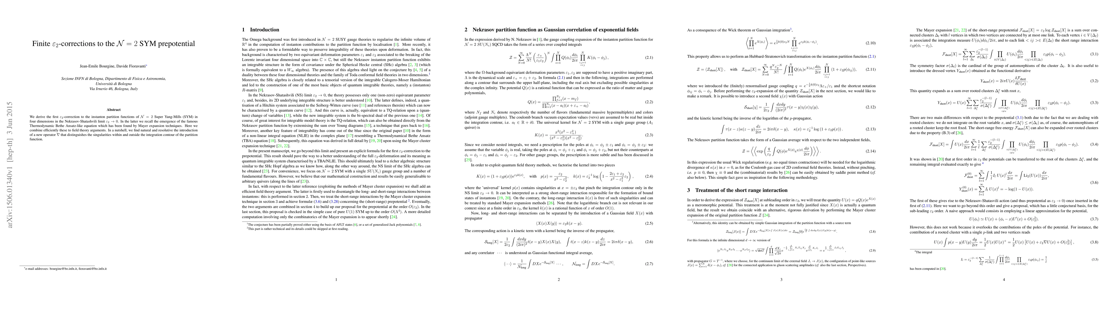We derive the first $\epsilon_2$-correction to the instanton partition functions of $\mathcal{N}=2$ Super Yang-Mills (SYM) in four dimensions in the Nekrasov-Shatashvili limit $\epsilon_2\rightarrow 0$. In the latter we recall the emergence of the famous Thermodynamic Bethe Ansatz-like equation which has been found by Mayer expansion techniques. Here we combine efficiently these to field theory arguments. In a nutshell, we find natural and resolutive the introduction of a new operator $\nabla$ that distinguishes the singularities within and outside the integration contour of the partition function.