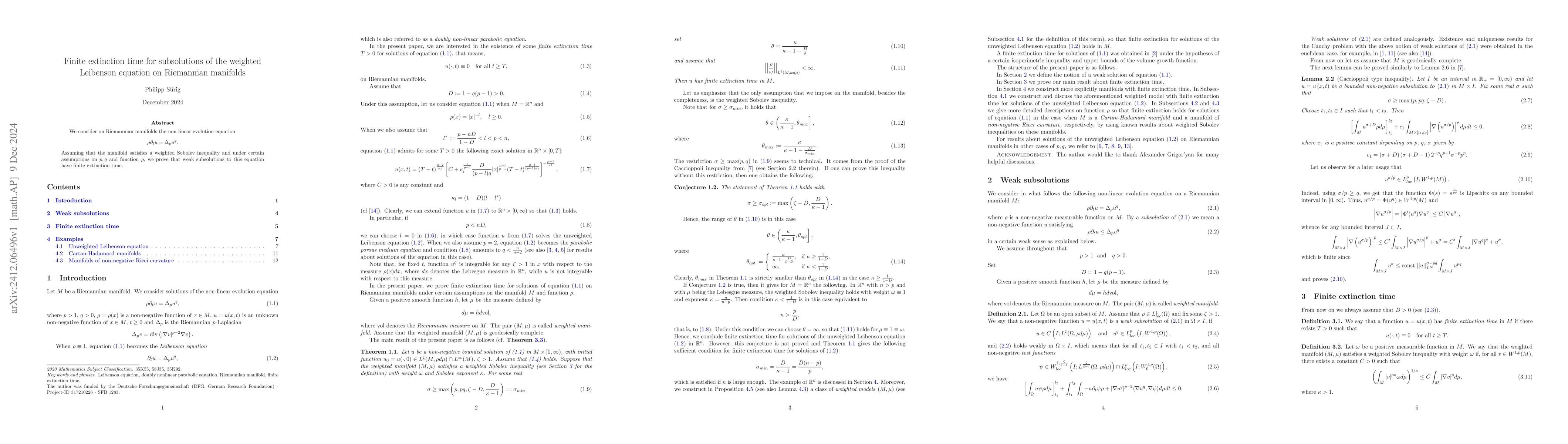 This paper investigates the finite extinction time for weak subsolutions of the weighted Leibenson equation on Riemannian manifolds. Under conditions involving a weighted Sobolev inequality and specific parameters for $p$, $q$, and function $\rho$, the authors establish that such subsolutions cease to exist after a finite duration.