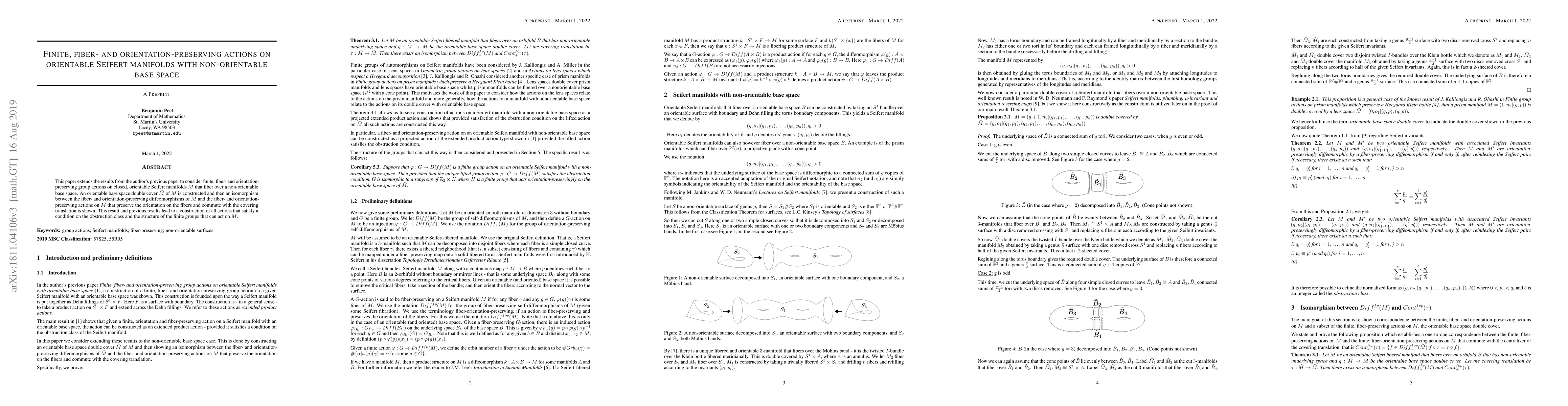 This paper extends prior results to analyze finite, fiber- and orientation-preserving group actions on orientable Seifert manifolds that fiber over a non-orientable base space, constructing an orientable double cover and establishing an isomorphism for specific diffeomorphisms.