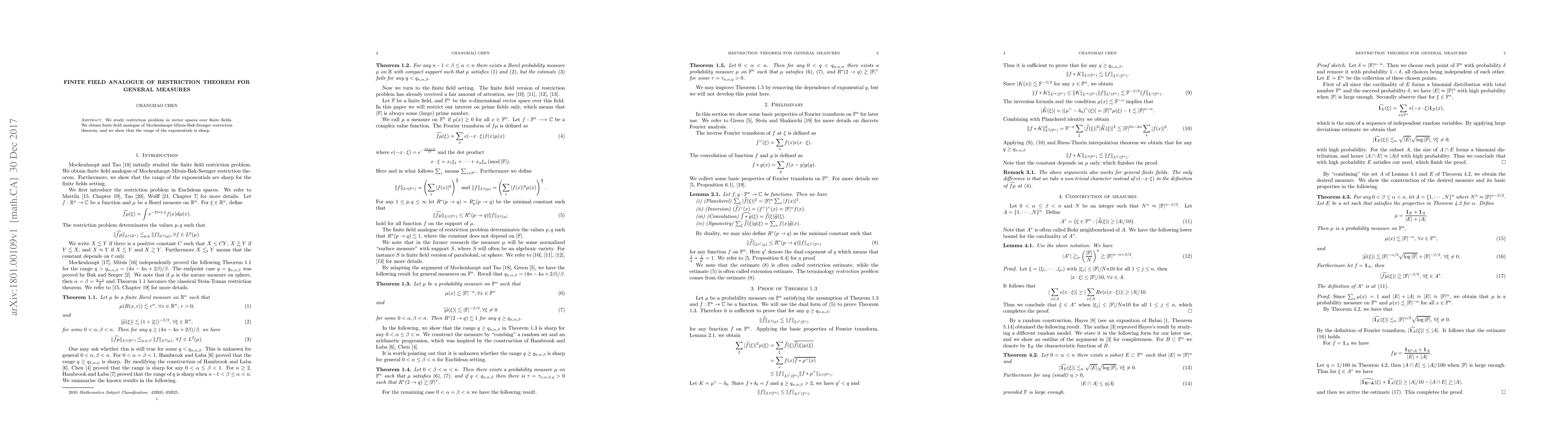 Researchers developed a finite field analogue of the Mockenhaupt-Mitsis-Bak-Seenger restriction theorem, finding that the range of exponentials is sharp in vector spaces over finite fields.