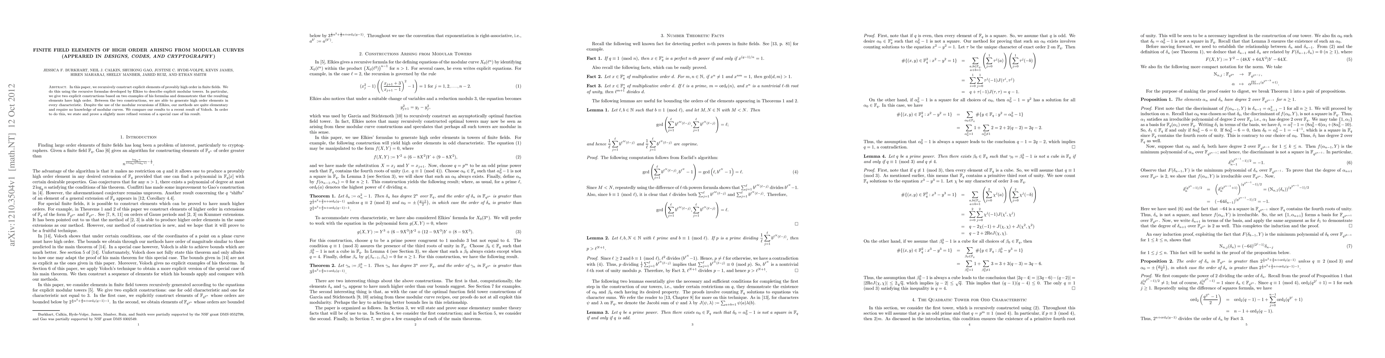 Researchers develop a method to create high-order elements in finite fields using recursive formulas from modular curves, demonstrating their effectiveness without requiring knowledge of modular curves.
