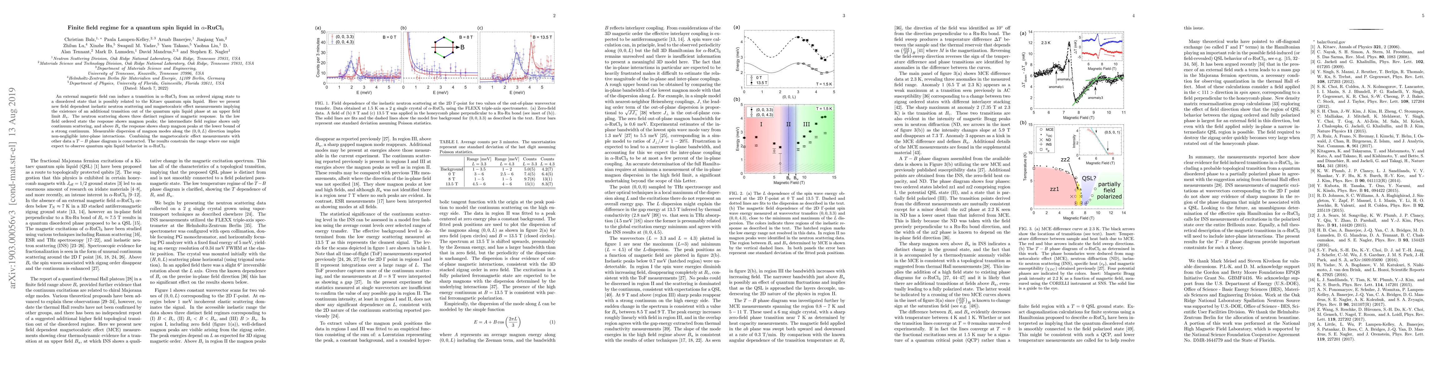 This paper reports on the magnetic field-induced transitions in $\alpha$-RuCl$_3$, revealing a finite field regime for a quantum spin liquid phase characterized by distinct neutron scattering regimes and a magnetocaloric effect, leading to a constructed $T-B$ phase diagram that constrains the quantum spin liquid behavior.