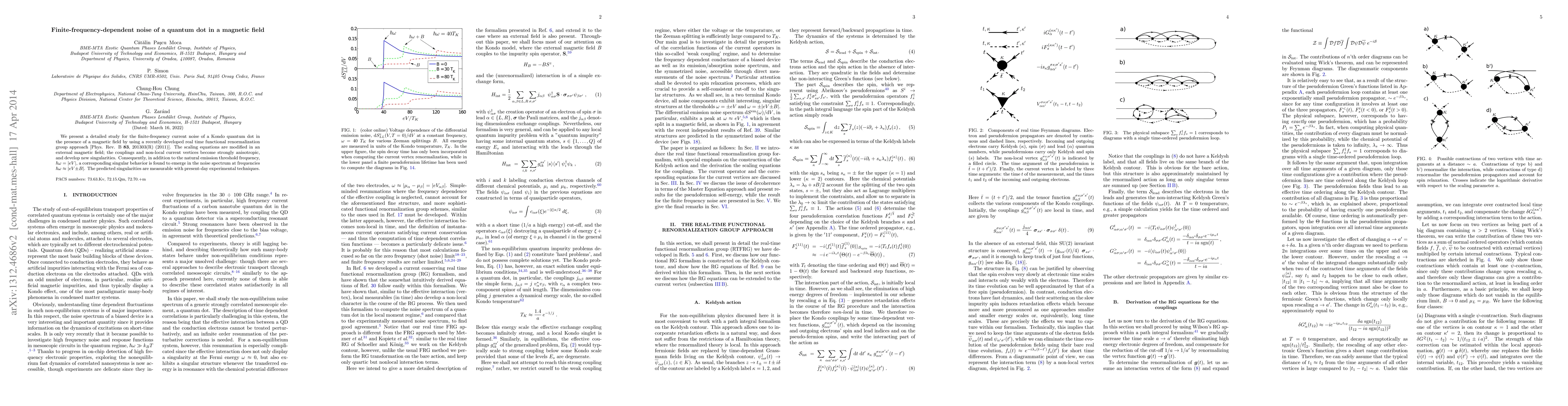 This paper investigates the finite-frequency current noise in a Kondo quantum dot under a magnetic field, employing a real-time functional renormalization group approach. The study reveals new singularities in the noise spectrum at frequencies $\hbar \omega \approx |eV\pm B|$, in addition to the natural emission threshold, suggesting measurable effects with current experimental techniques.