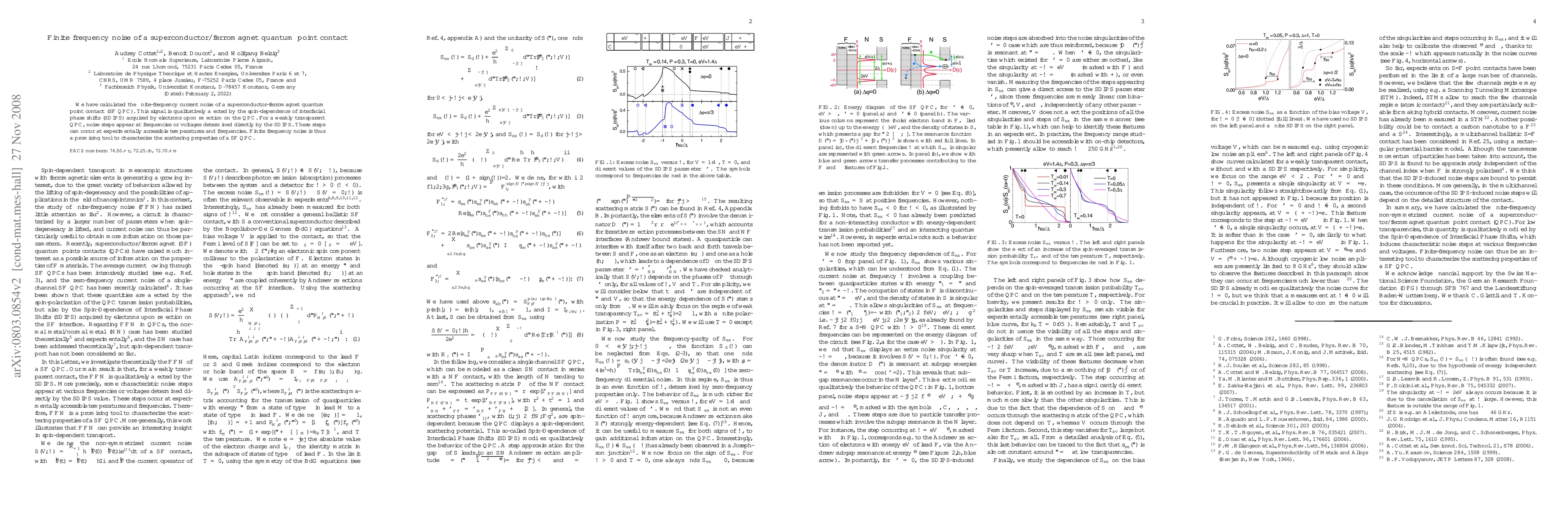 This study calculates the finite-frequency current noise in a superconductor-ferromagnet quantum point contact (SF QPC), revealing that noise steps are influenced by spin-dependent interfacial phase shifts (SDIPS). These noise steps, observable at accessible temperatures and frequencies, provide a promising method for characterizing the scattering properties of SF QPCs.