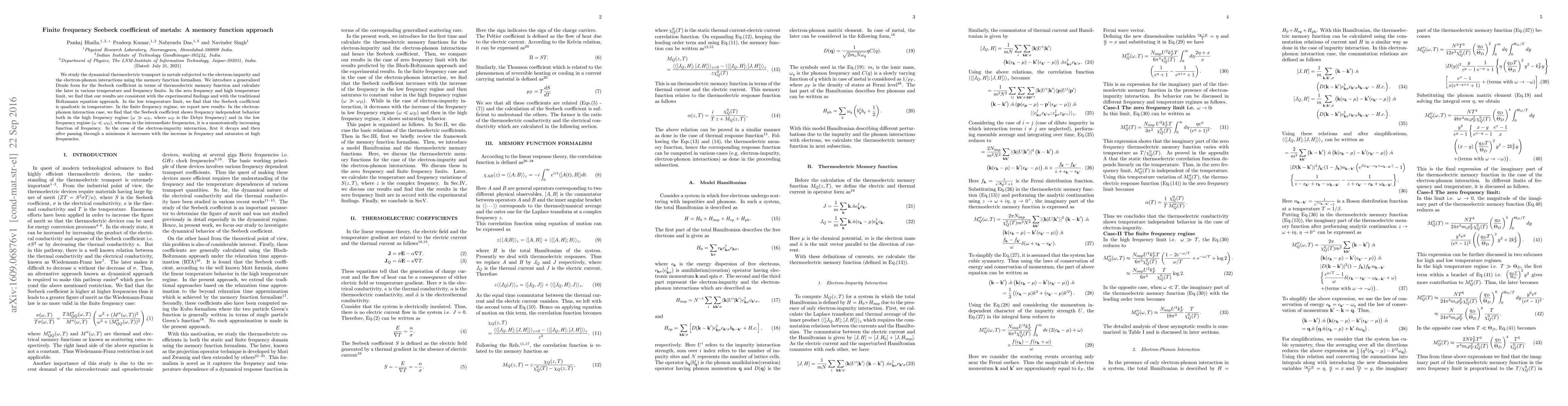 This paper investigates the finite frequency Seebeck coefficient in metals using memory function formalism, revealing frequency-dependent behavior in electron-impurity and electron-phonon interactions. It finds that the Seebeck coefficient is frequency independent in high and low frequency regimes but varies in intermediate frequencies, with distinct behaviors for impurity and phonon interactions.