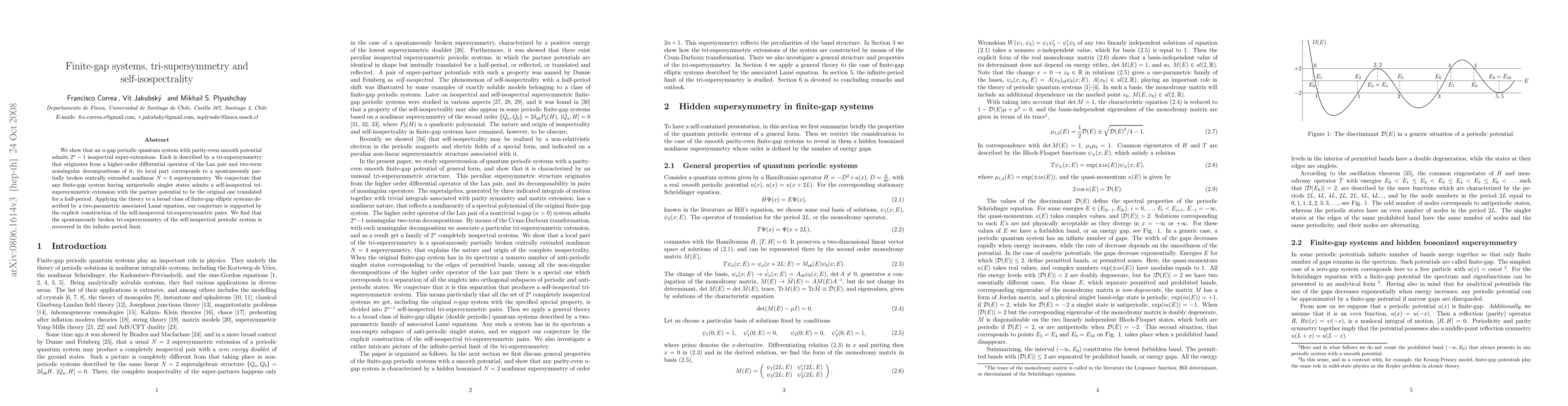 We show that an n-gap periodic quantum system with parity-even smooth potential admits $2^n-1$ isospectral super-extensions. Each is described by a tri-supersymmetry that originates from a higher-order differential operator of the Lax pair and two-term nonsingular decompositions of it; its local part corresponds to a spontaneously partially broken centrally extended nonlinear N=4 supersymmetry. We conjecture that any finite-gap system having antiperiodic singlet states admits a self-isospectral tri-supersymmetric extension with the partner potential to be the original one translated for a half-period. Applying the theory to a broad class of finite-gap elliptic systems described by a two-parametric associated Lame equation, our conjecture is supported by the explicit construction of the self-isospectral tri-supersymmetric pairs. We find that the spontaneously broken tri-supersymmetry of the self-isospectral periodic system is recovered in the infinite period limit.