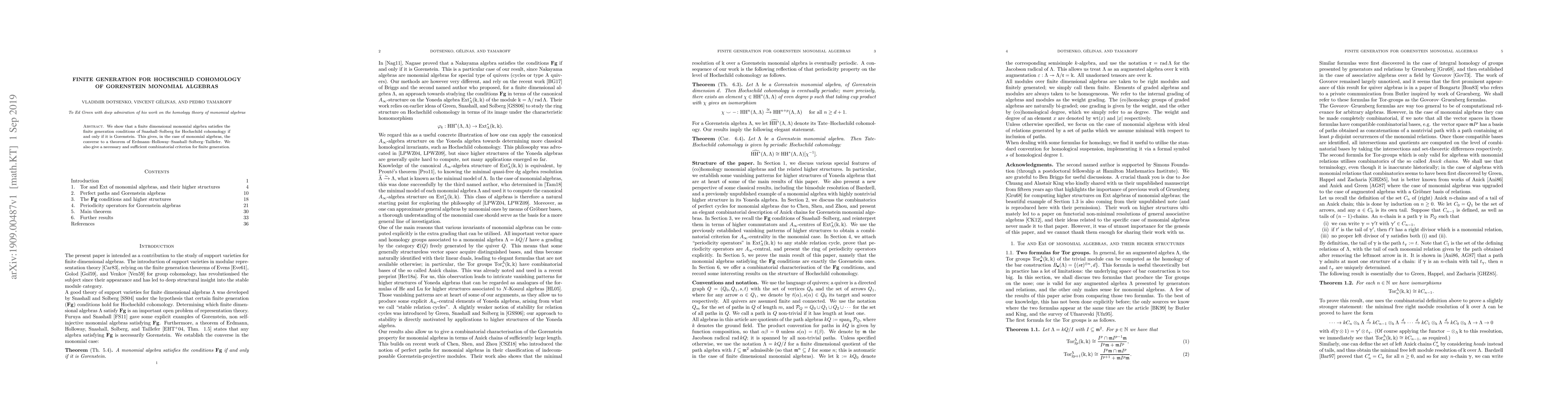 This paper proves that finite dimensional monomial algebras meet the finite generation criteria for Hochschild cohomology if and only if they are Gorenstein, providing a converse to a prior theorem and presenting a combinatorial criterion for finite generation.