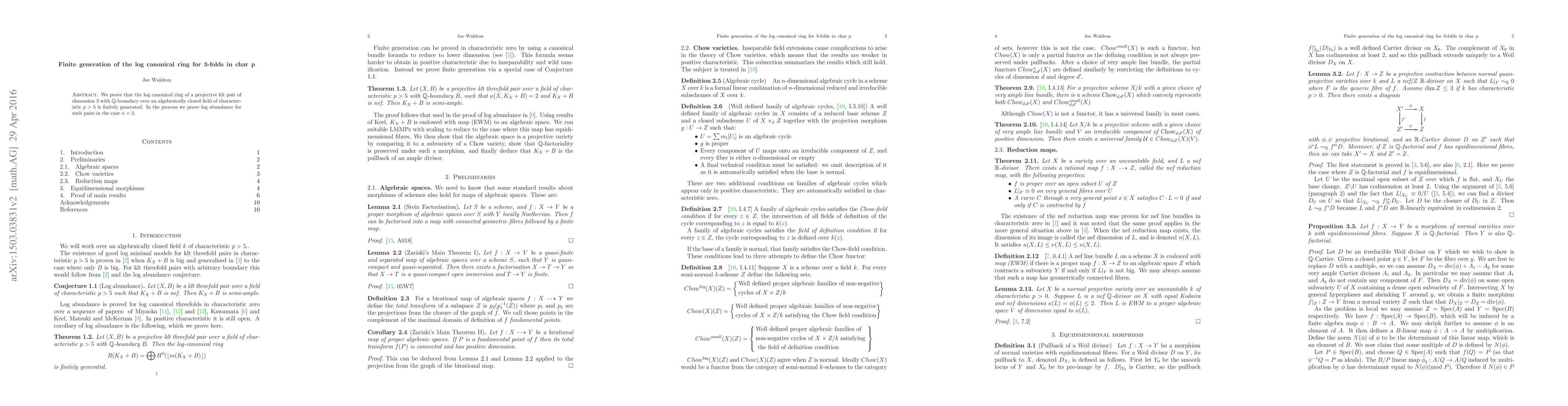 Summary: This paper demonstrates that the log canonical ring of a 3-dimensional klt pair with $\mathbb{Q}$-boundary in characteristic $p>5$ is finitely generated, and establishes log abundance for such pairs when the Kodaira dimension is 2.