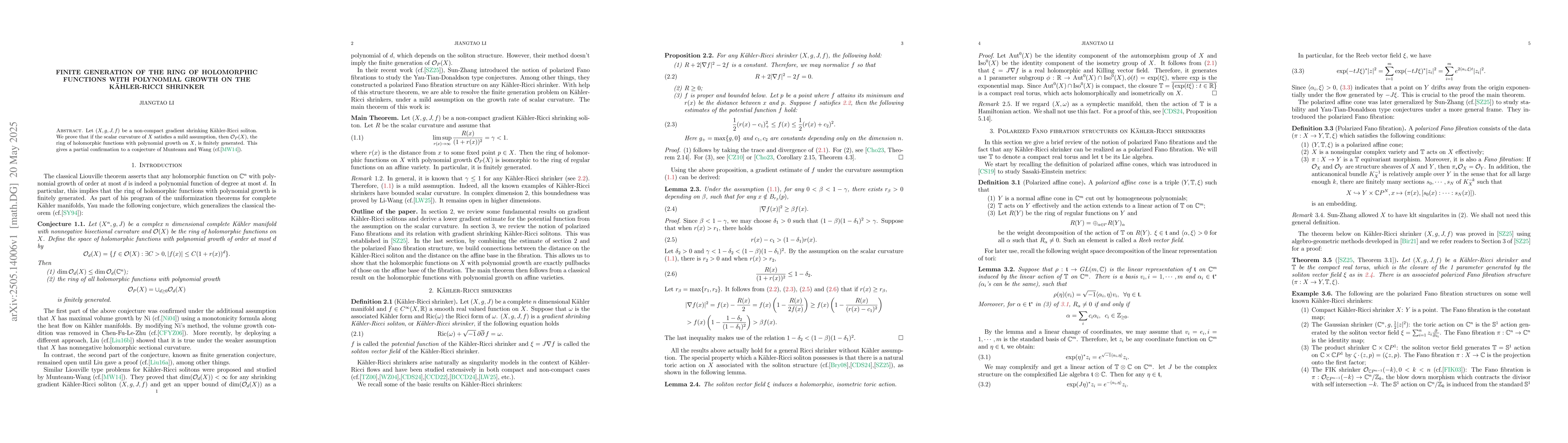 The methodology involves analyzing non-compact gradient shrinking Kähler-Ricci solitons and examining the ring of holomorphic functions with polynomial growth on such spaces under a mild assumption on scalar curvature.
