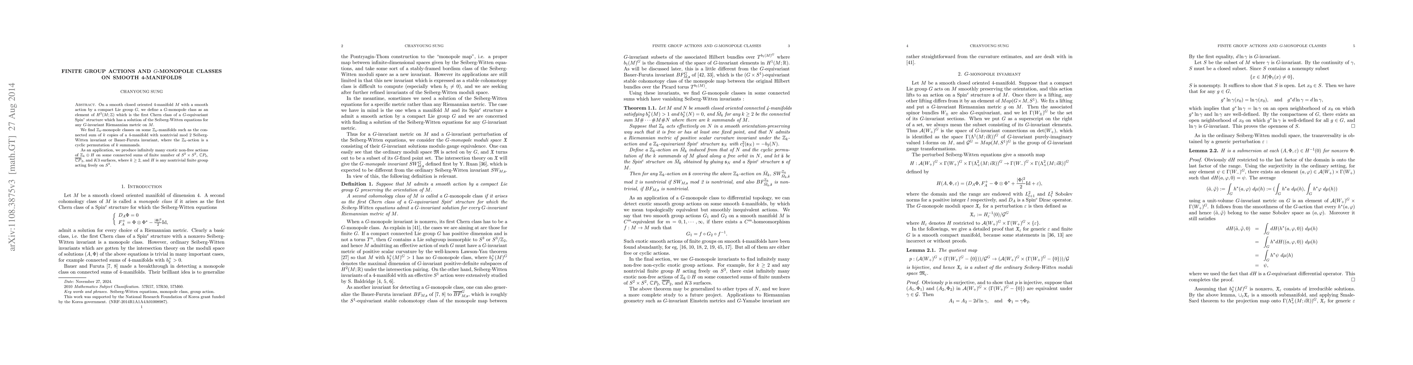 On a smooth closed oriented $4$-manifold $M$ with a smooth action by a compact Lie group $G$, we define a $G$-monopole class as an element of $H^2(M;\Bbb Z)$ which is the first Chern class of a $G$-equivariant Spin$^c$ structure which has a solution of the Seiberg-Witten equations for any $G$-invariant Riemannian metric on $M$. We find $\Bbb Z_k$-monopole classes on some $\Bbb Z_k$-manifolds such as the connected sum of $k$ copies of a 4-manifold with nontrivial mod 2 Seiberg-Witten invariant or Bauer-Furuta invariant, where the $\Bbb Z_k$-action is a cyclic permutation of $k$ summands. As an application, we produce infinitely many exotic non-free actions of $\Bbb Z_k\oplus H$ on some connected sums of finite number of $S^2\times S^2$, $\Bbb CP_2$, $\overline{\Bbb CP}_2$, and $K3$ surfaces, where $k\geq 2$, and $H$ is any nontrivial finite group acting freely on $S^3$.