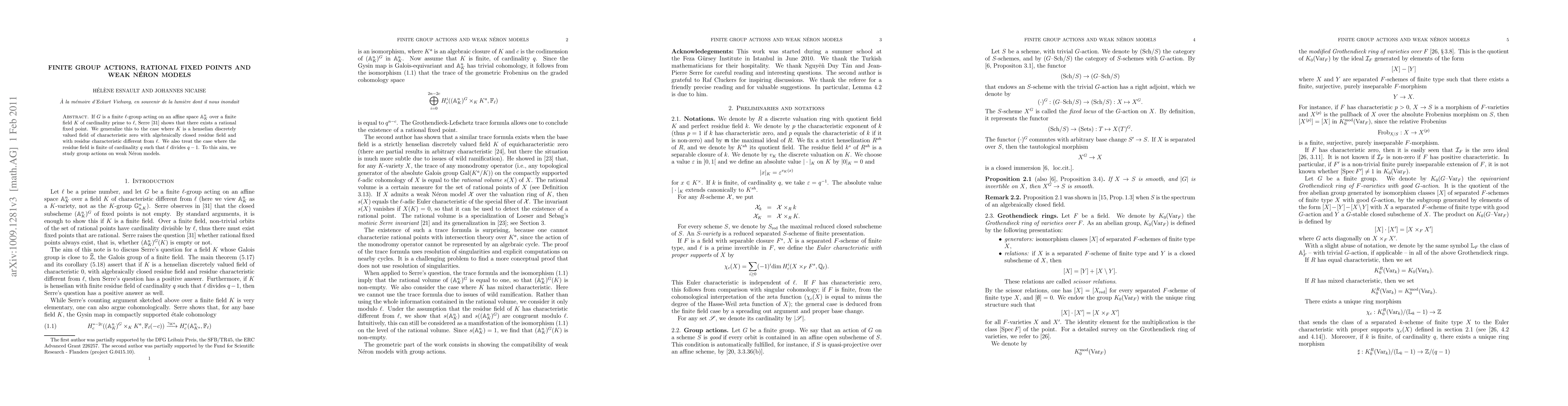 This paper generalizes Serre's theorem on rational fixed points under finite group actions to henselian discretely valued fields and explores group actions on weak Néron models, particularly when the residue field is finite with characteristic different from the group order.
