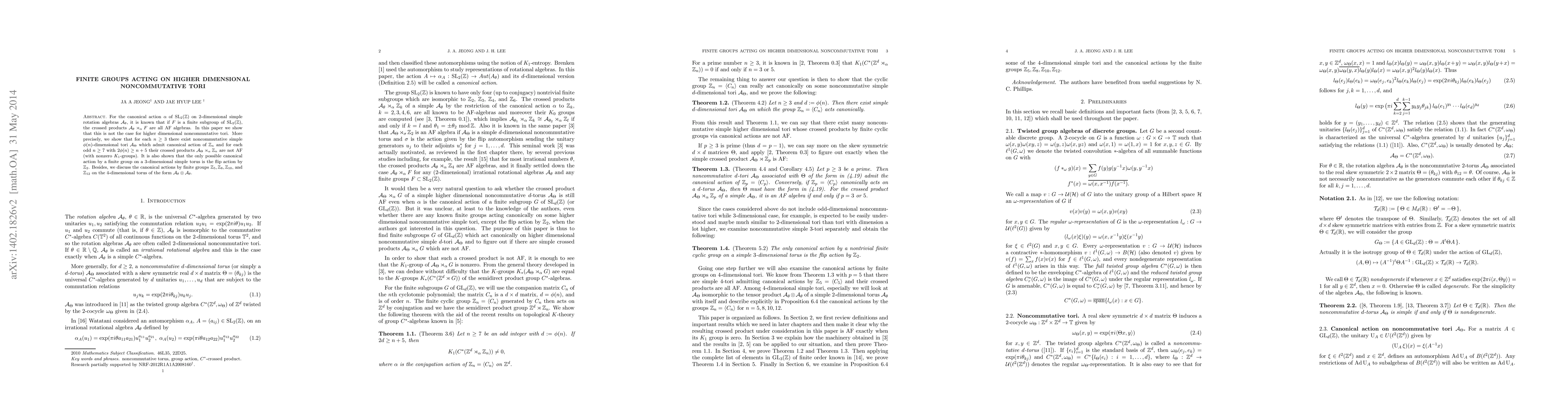For the canonical action $\alpha$ of $\operatorname{SL}_2(\mathbb{Z})$ on 2-dimensional simple rotation algebras $\mathcal{A}_\theta$, it is known that if $F$ is a finite subgroup of $\operatorname{SL}_2(\mathbb{Z})$, the crossed products $\mathcal{A}_\theta\rtimes_\alpha F$ are all AF algebras. In this paper we show that this is not the case for higher dimensional noncommutative tori. More precisely, we show that for each $n\geq 3$ there exist noncommutative simple $\phi(n)$-dimensional tori $\mathcal{A}_\Theta$ which admit canonical action of $\mathbb{Z}_n$ and for each odd $n\geq 7$ with $2\phi(n)\geq n+5$ their crossed products $\mathcal{A}_\Theta\rtimes_\alpha \mathbb{Z}_n$ are not AF (with nonzero $K_1$-groups). It is also shown that the only possible canonical action by a finite group on a $3$-dimensional simple torus is the flip action by $\mathbb{Z}_2$. Besides, we discuss the canonical actions by finite groups $\mathbb{Z}_5, \mathbb{Z}_8, \mathbb{Z}_{10}$, and $\mathbb{Z}_{12}$ on the $4$-dimensional torus of the form $\mathcal{A}_\theta\otimes \mathcal{A}_\theta$.