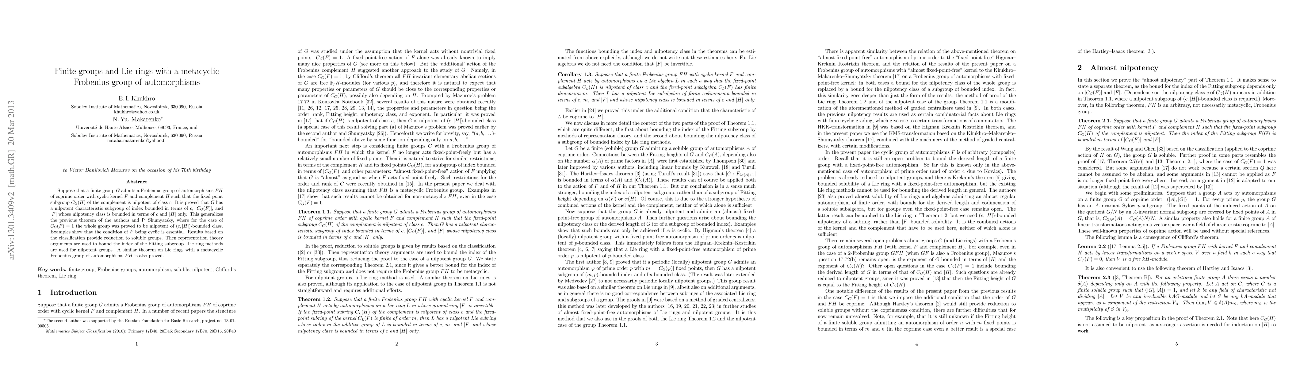 This paper proves that a finite group admitting a metacyclic Frobenius group of automorphisms has a nilpotent characteristic subgroup with an index and nilpotency class bounded by specific group parameters. A similar result is established for Lie rings with metacyclic Frobenius automorphisms.