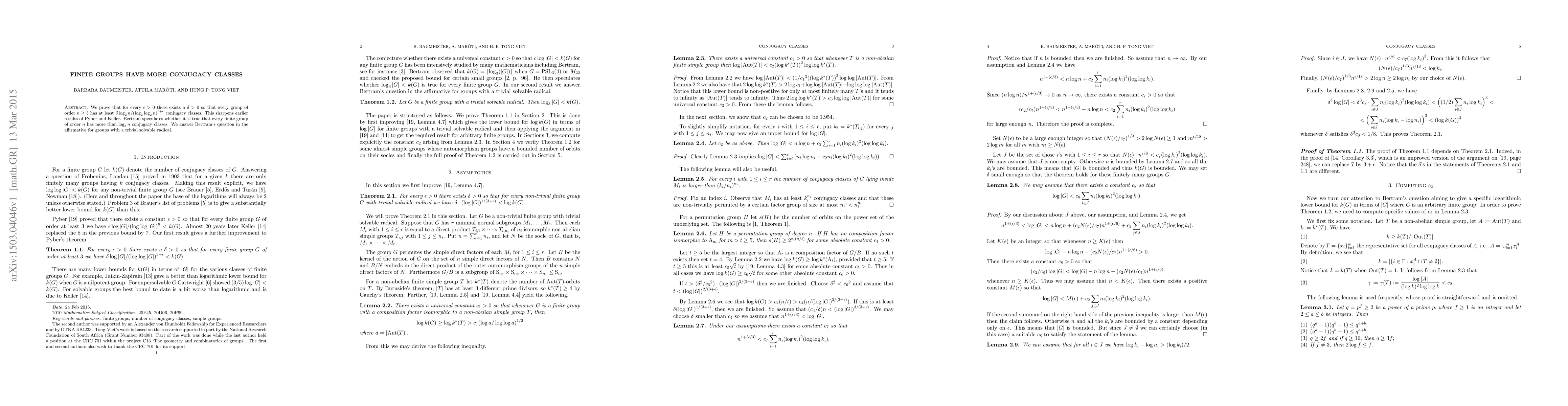 This paper proves that for any $\epsilon > 0$, every group of order $n \geq 3$ has at least $\delta \log_{2} n/{(\log_{2} \log_{2} n)}^{3+\epsilon}$ conjugacy classes, improving upon previous results. It also affirms Bertram's conjecture that finite groups with a trivial solvable radical have more than $\log_{3}n$ conjugacy classes.