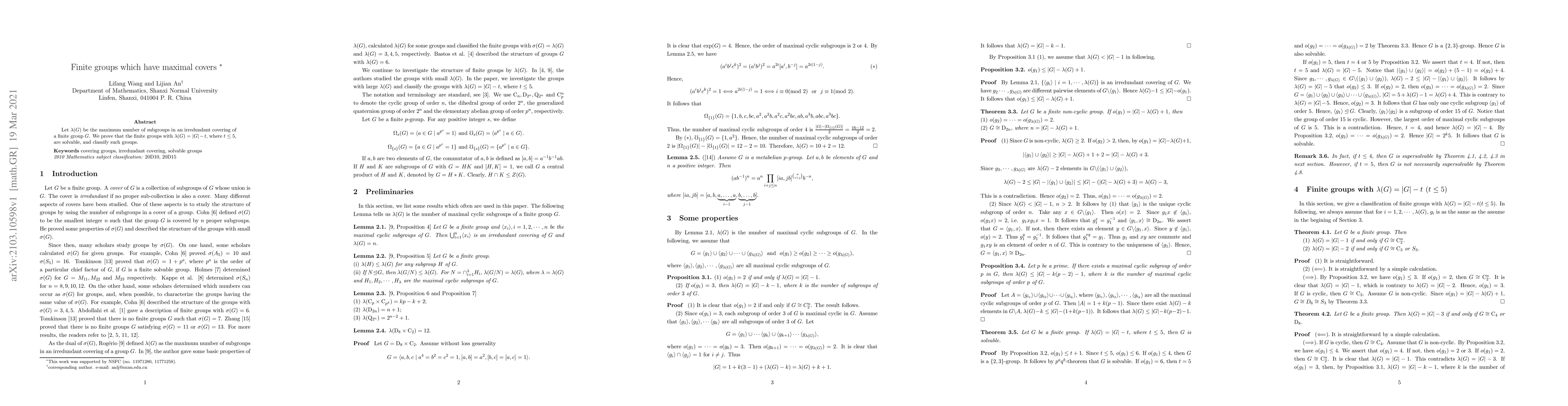This paper proves that finite groups with a maximal cover consisting of $\lambda(G)=|G|-t$ subgroups, where $t\leq 5$, are solvable and classifies these groups. The study focuses on the structure of such groups and their subgroup configurations.