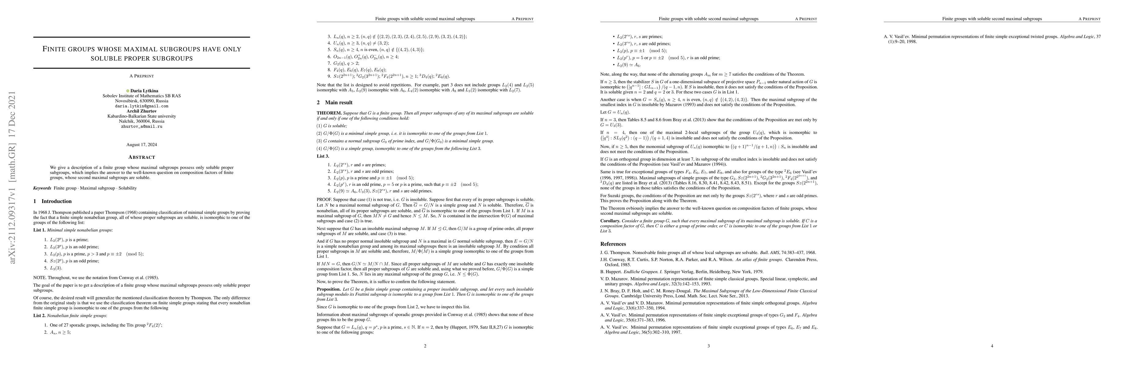 Summary: The paper characterizes finite groups wherein all maximal subgroups contain only soluble proper subgroups, thereby addressing a question about the composition factors of such groups and their second maximal subgroups.