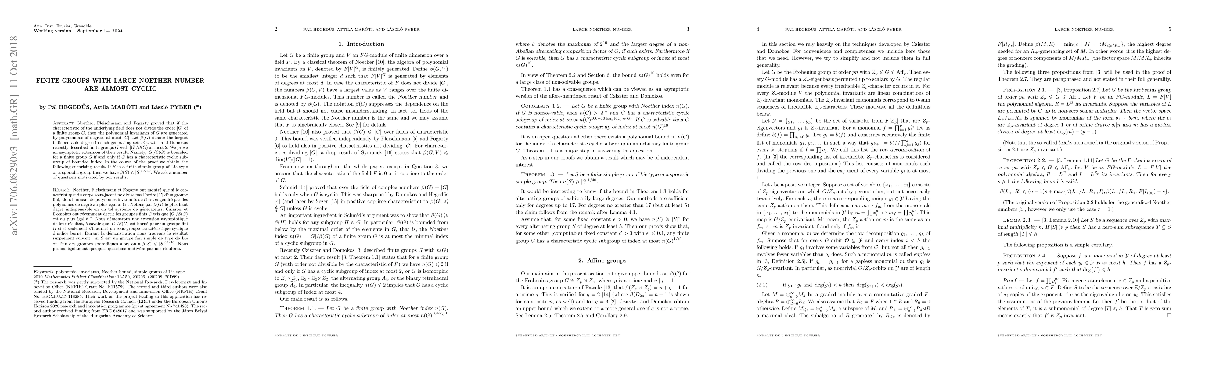 This paper proves that finite groups with large Noether number have a characteristic cyclic subgroup of bounded index, extending previous results. It also shows that for finite simple groups of Lie type or sporadic groups, the Noether number is bounded by a fraction of the group order.