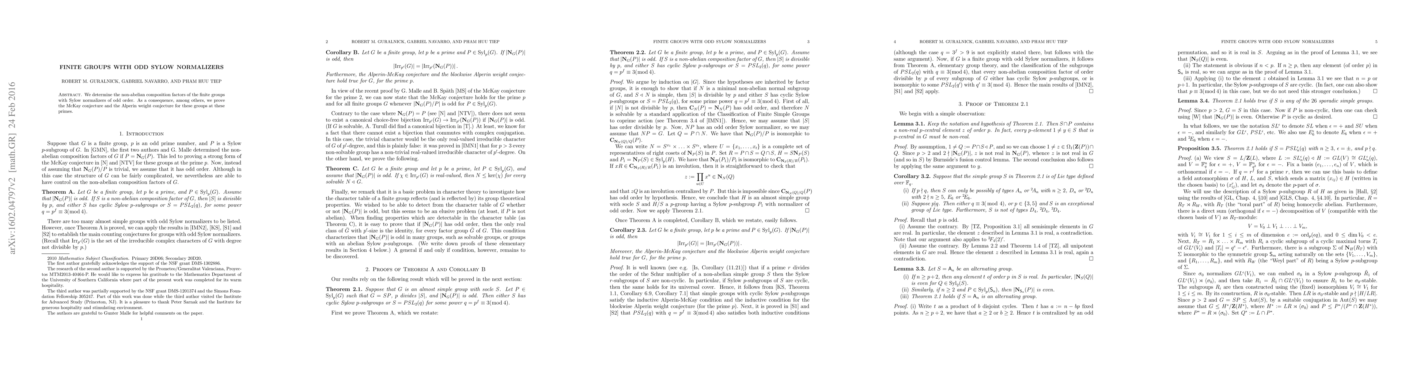 This research determines the non-abelian composition factors of finite groups where the Sylow normalizers are of odd order, proving the McKay conjecture and Alperin weight conjecture for these groups. The findings provide significant insights into the structure and representation theory of such groups.