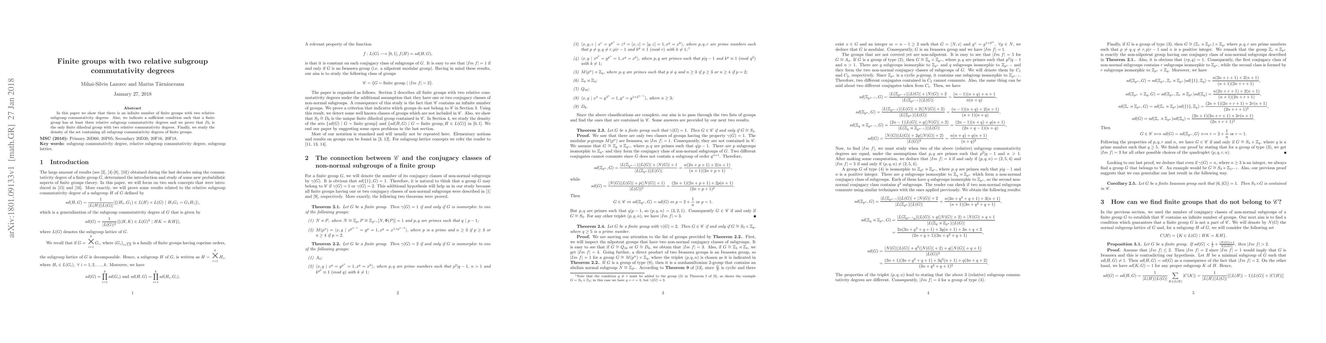 This paper identifies an infinite number of finite groups exhibiting exactly two relative subgroup commutativity degrees and explores conditions for groups with at least three such degrees, specifically noting that $D_6$ is the only dihedral group with this property. It also investigates the density of the set of all subgroup commutativity degrees among finite groups.
