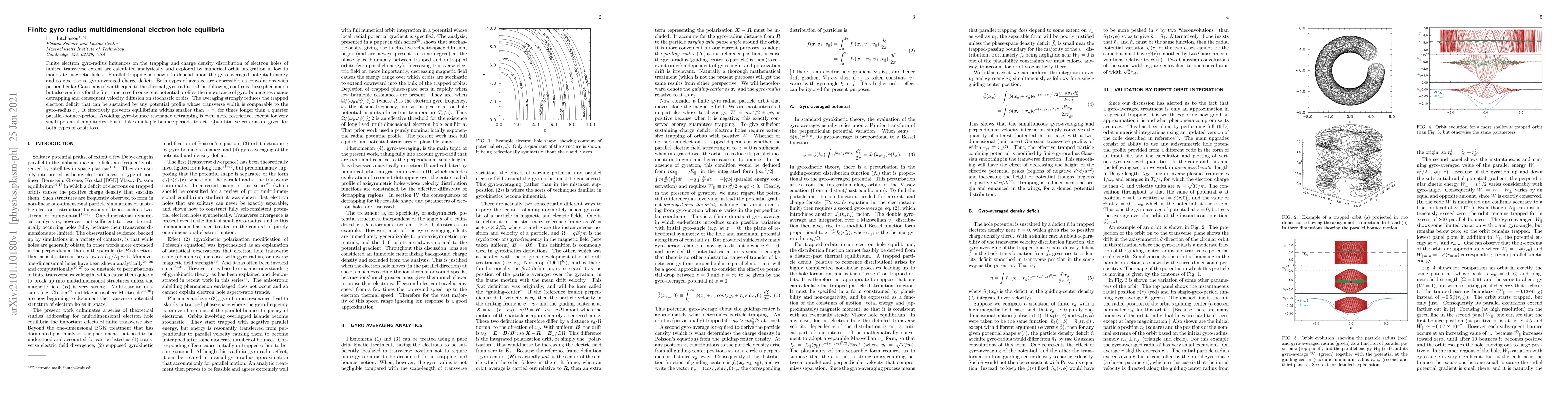 Finite electron gyro-radius influences on the trapping and charge density distribution of electron holes of limited transverse extent are calculated analytically and explored by numerical orbit integration in low to moderate magnetic fields. Parallel trapping is shown to depend upon the gyro-averaged potential energy and to give rise to gyro-averaged charge deficit. Both types of average are expressible as convolutions with perpendicular Gaussians of width equal to the thermal gyro-radius. Orbit-following confirms these phenomena but also confirms for the first time in self-consistent potential profiles the importance of gyro-bounce-resonance detrapping and consequent velocity diffusion on stochastic orbits. The averaging strongly reduces the trapped electron deficit that can be sustained by any potential profile whose transverse width is comparable to the gyro-radius $r_g$. It effectively prevents equilibrium widths smaller than $\sim r_g$ for times longer than a quarter parallel-bounce-period. Avoiding gyro-bounce resonance detrapping is even more restrictive, except for very small potential amplitudes, but it takes multiple bounce-periods to act. Quantitative criteria are given for both types of orbit loss.