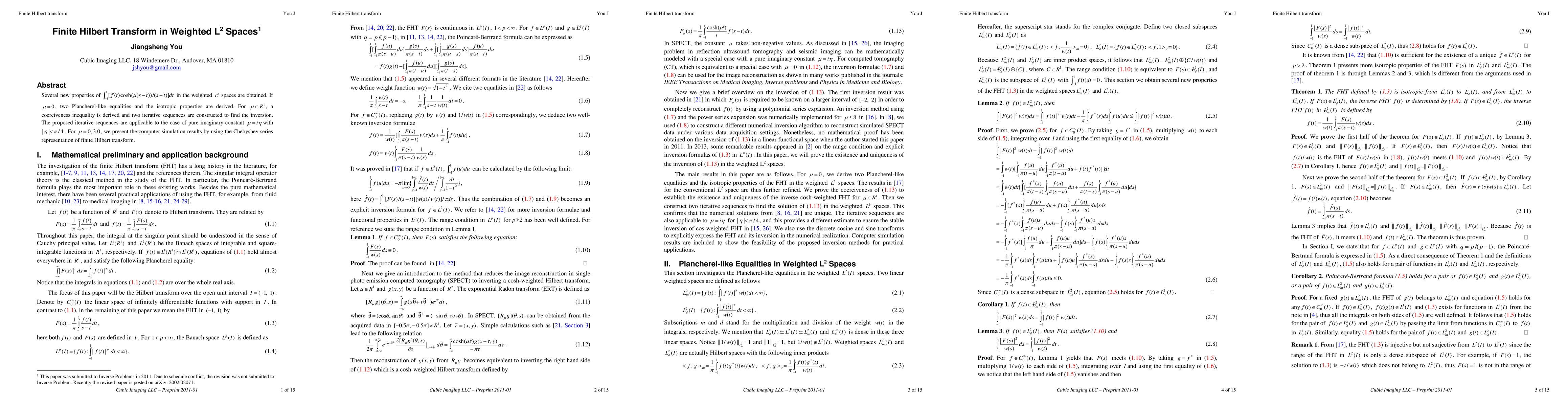 This paper explores new properties of the weighted Hilbert transform in L2 spaces, deriving Plancherel-like equations and isotropic properties for zero mu, and establishing coerciveness and iterative inversion sequences for real mu. Simulation results for mu=0.0 and 3.0 demonstrate the utility of these findings in imaging applications.