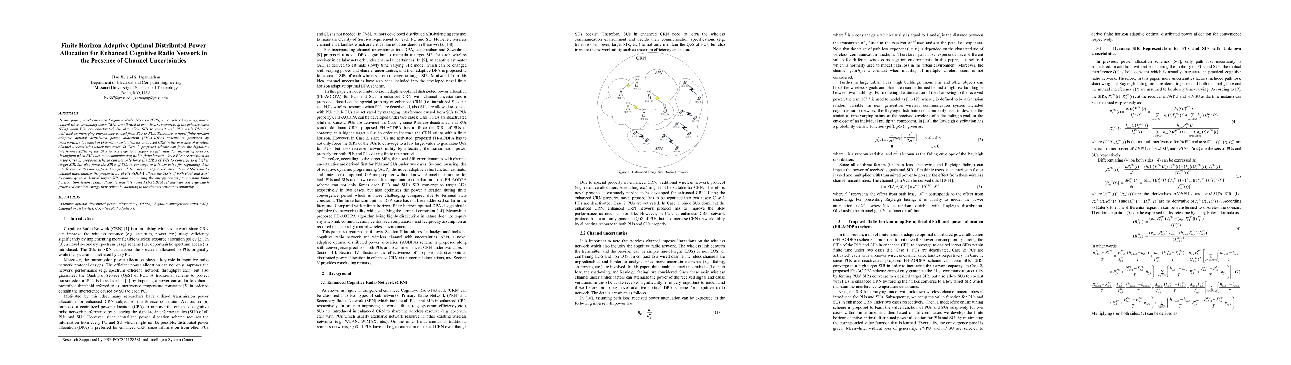 This paper proposes a novel finite horizon adaptive optimal distributed power allocation scheme to improve cognitive radio networks' performance under channel uncertainties, increasing network throughput while minimizing energy consumption.