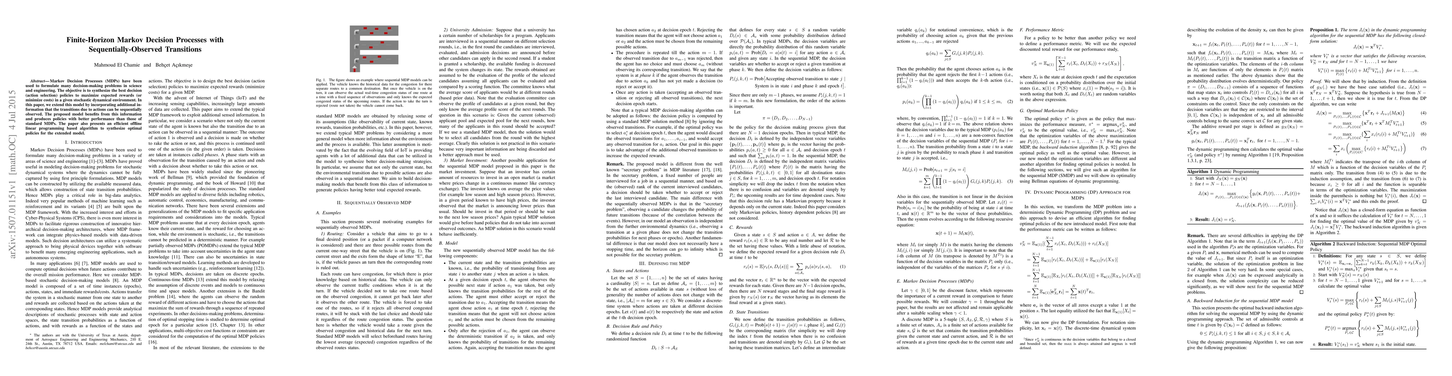 This paper extends finite-horizon Markov Decision Processes to include sequentially-observed transitions, enhancing policy performance. An efficient offline linear programming algorithm is introduced to synthesize optimal policies for this extended model.
