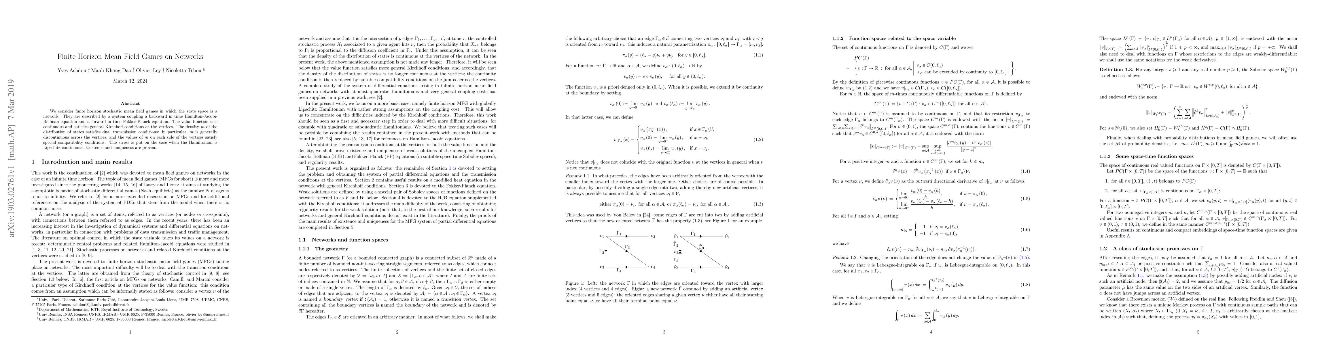 We consider finite horizon stochastic mean field games in which the state space is a network. They are described by a system coupling a backward in time Hamilton-Jacobi-Bellman equation and a forward in time Fokker-Planck equation. The value function u is continuous and satisfies general Kirchhoff conditions at the vertices. The density m of the distribution of states satisfies dual transmission conditions: in particular, m is generally discontinuous across the vertices, and the values of m on each side of the vertices satisfy special compatibility conditions. The stress is put on the case when the Hamiltonian is Lipschitz continuous. Existence and uniqueness are proven.