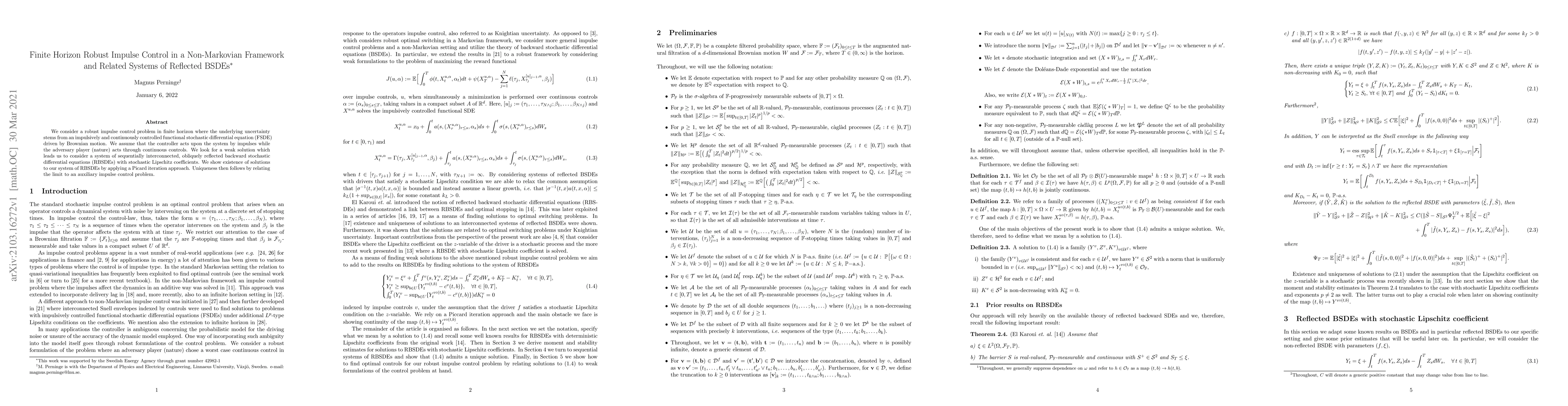 This paper explores a robust impulse control problem in a finite horizon setting governed by a non-Markovian functional stochastic differential equation. It investigates a system of reflected backward stochastic differential equations (RBSDEs) and proves existence and uniqueness of solutions using a Picard iteration method and an auxiliary impulse control problem.