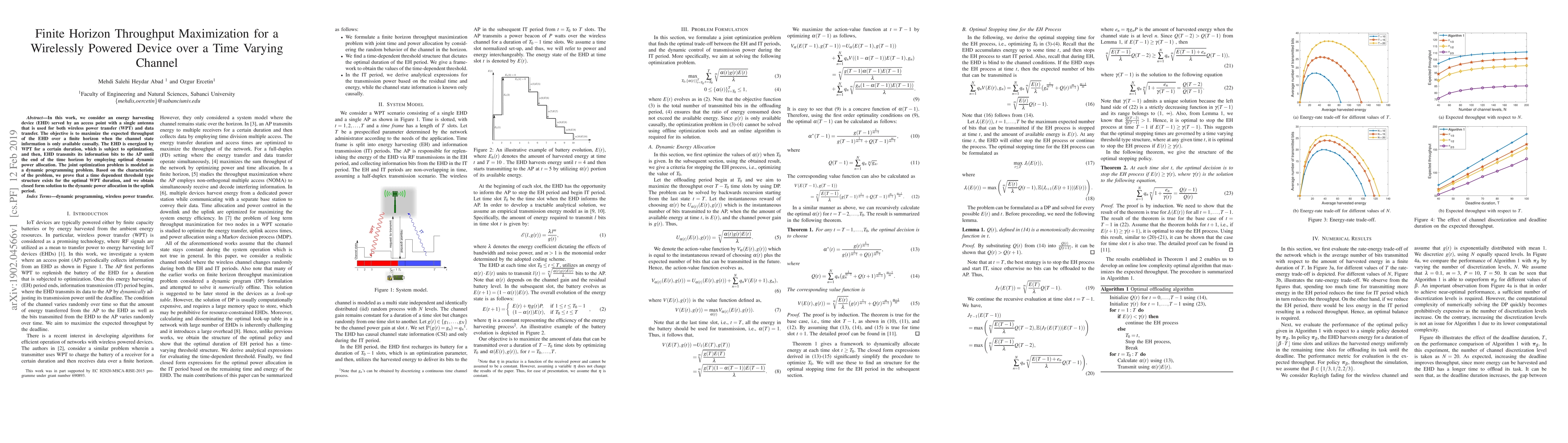 In this work, we consider an energy harvesting device (EHD) served by an access point with a single antenna that is used for both wireless power transfer (WPT) and data transfer. The objective is to maximize the expected throughput of the EHD over a finite horizon when the channel state information is only available causally. The EHD is energized by WPT for a certain duration, which is subject to optimization, and then, EHD transmits its information bits to the AP until the end of the time horizon by employing optimal dynamic power allocation. The joint optimization problem is modeled as a dynamic programming problem. Based on the characteristic of the problem, we prove that a time dependent threshold type structure exists for the optimal WPT duration, and we obtain closed form solution to the dynamic power allocation in the uplink period.