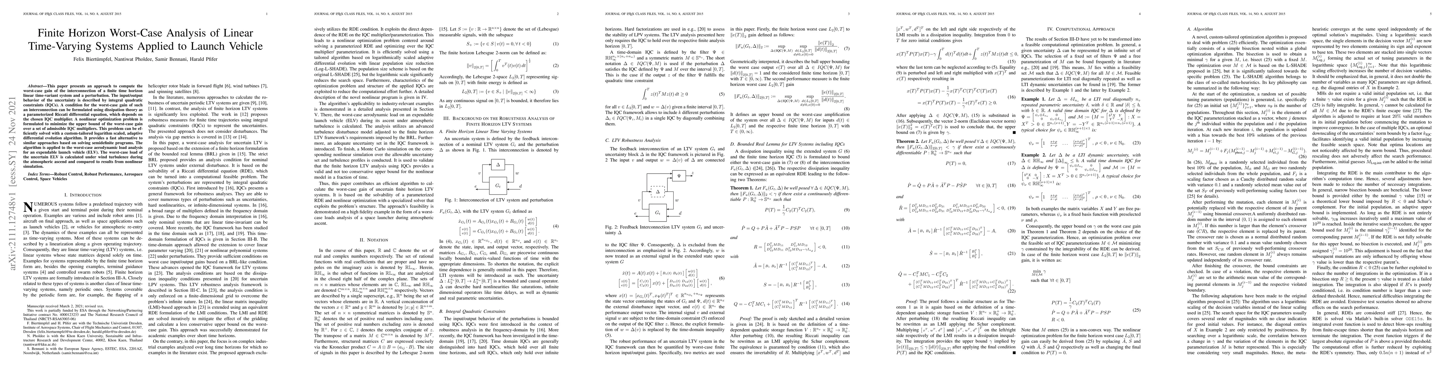 This paper presents an approach to compute the worst-case gain of the interconnection of a finite time horizon linear time-variant system and a perturbation. The input/output behavior of the uncertainty is described by integral quadratic constraints (IQCs). A condition for the worst-case gain of such an interconnection can be formulated using dissipation theory as a parameterized Riccati differential equation, which depends on the chosen IQC multiplier. A nonlinear optimization problem is formulated to minimize the upper bound of the worst-case gain over a set of admissible IQC multipliers. This problem can be efficiently solved with a custom-tailored logarithm scaled, adaptive differential evolution algorithm. It provides a fast alternative to similar approaches based on solving semidefinite programs. The algorithm is applied to the worst-case aerodynamic load analysis for an expendable launch vehicle (ELV). The worst-case load of the uncertain ELV is calculated under wind turbulence during the atmospheric ascend and compared to results from nonlinear simulation.